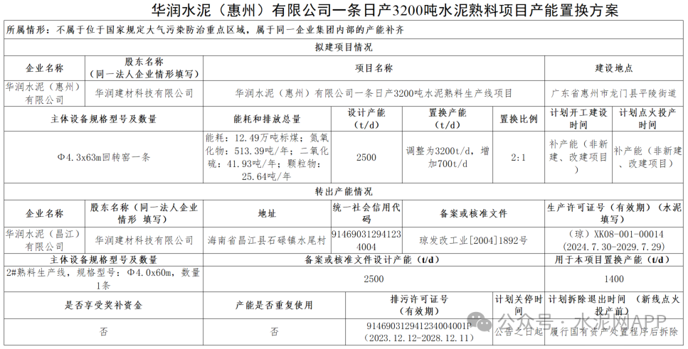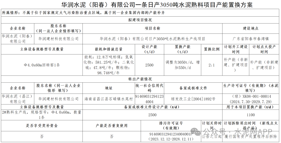近日,廣東工信廳發(fā)布兩則華潤(rùn)水泥補(bǔ)充熟料產(chǎn)能方案公告。置換方案顯示,華潤(rùn)水泥(昌江)公司退出一條2500t/d熟料生產(chǎn)線,其中1100t/d產(chǎn)能用于華潤(rùn)水泥(陽(yáng)春)公司一條2500t/d熟料線,補(bǔ)齊后產(chǎn)能3050t/d,置換比例2:1;剩余1400t/d產(chǎn)能用于補(bǔ)充華潤(rùn)水泥(惠州)公司一條2500t/d熟料線,補(bǔ)齊后產(chǎn)能3200t/d,置換比例2:1。