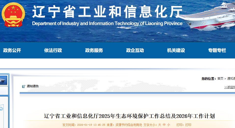 2025年,遼寧省工業(yè)和信息化廳深入學(xué)習(xí)貫徹習(xí)近平生態(tài)文明思想,切實履行生態(tài)環(huán)境保護工作職責,加快推動工業(yè)綠色低碳發(fā)展,全力推進美麗遼寧建設(shè)?,F(xiàn)將2025年生態(tài)環(huán)境保護工作完成情況和2026年重點工作安排報告如下。