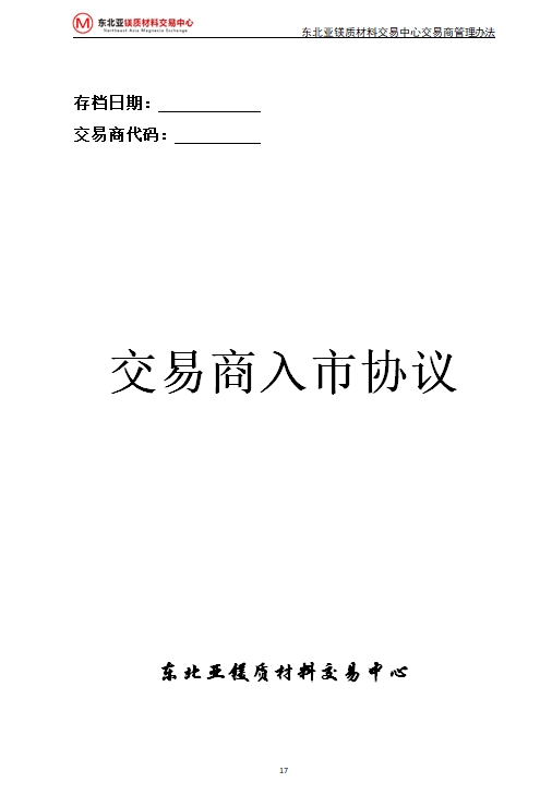 (四)按照《東北亞鎂質材料交易中心入市協(xié)議》的規(guī)定向交易中心繳納相關費用;