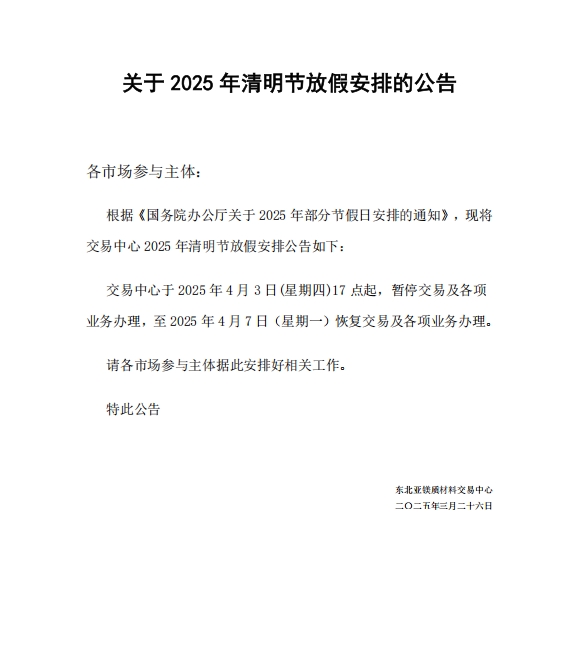 關(guān)于2025年清明節(jié)放假安排的公告